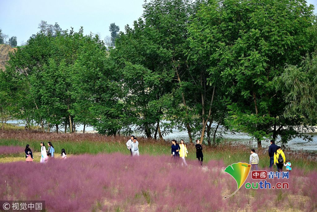 中國青年網(wǎng)北京10月7日電 2018年10月6日,游客在“粉色田野”里游玩、留影。粉黛亂子草是一種觀賞草種,該植物夏季為主要生長季,全株綠色,花期為9月中旬至11月中旬,開花時(shí),綠葉為底,粉紫色花穗如發(fā)絲從基部長出,遠(yuǎn)看如紅色云霧。