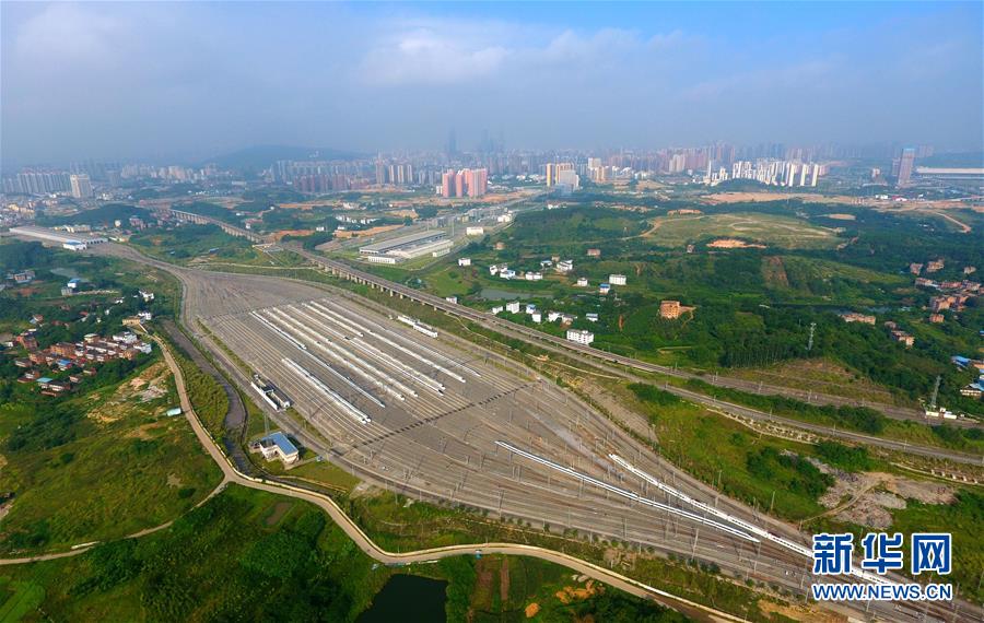 這是廣西南寧動(dòng)車所內(nèi)準(zhǔn)備發(fā)往各地的動(dòng)車組列車(7月1日無人機(jī)拍攝)。 廣西壯族自治區(qū)成立60年來,鐵路建設(shè)發(fā)生翻天覆地的變化。來自中國鐵路南寧局集團(tuán)有限公司的數(shù)據(jù)顯示,1958年廣西鐵路總里程為1346.3公里,如今廣西鐵路總里程達(dá)5191公里。廣西與周邊相鄰省份間實(shí)現(xiàn)動(dòng)車“公交化”開行。此外,北部灣港—重慶班列、東盟海產(chǎn)品冷鏈班列、“百色一號(hào)”果蔬專列等的開通和運(yùn)營,強(qiáng)化了鐵路供給的針對(duì)性和有效性。鐵路成為助推廣西經(jīng)濟(jì)社會(huì)快速發(fā)展的“大動(dòng)脈”。 新華社記者黃孝邦攝