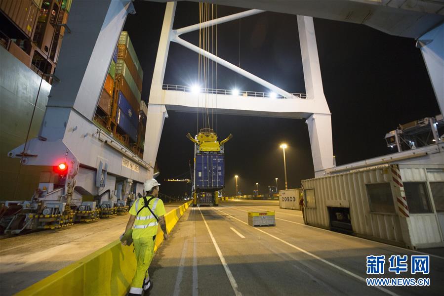 10月15日晚,吊車在比利時(shí)澤布呂赫港集裝箱碼頭進(jìn)行裝卸作業(yè)。 新華社記者 葉平凡 攝