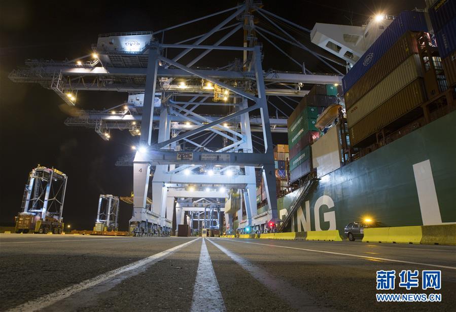 這是10月15日晚在比利時(shí)澤布呂赫港拍攝的正在進(jìn)行裝卸作業(yè)的集裝箱碼頭。新華社記者 葉平凡 攝
