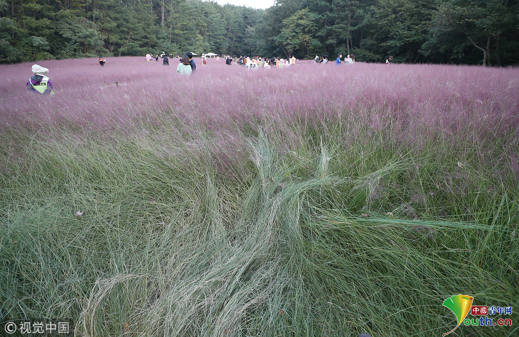 當(dāng)?shù)貢r(shí)間2018年10月16日,韓國(guó)蔚山,近日,蔚山公園大片粉黛亂子草盛開,粉紅花海浪漫十足,但部分花海遭游客隨意踩踏。圖片作者:Yonhap News Agency