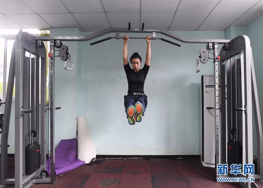 10月16日,湯春燕在健身房內(nèi)進行體能訓(xùn)練。 新華社記者王全超攝
