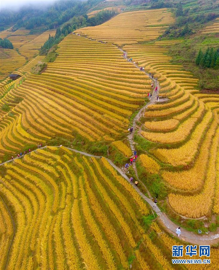 這是10月16日無人機(jī)拍攝的龍脊梯田秋色。金秋時(shí)節(jié),廣西龍勝各族自治縣龍脊梯田美如畫卷。 新華社記者 黃孝邦 攝