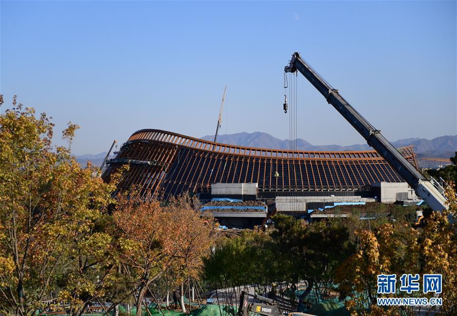 10月18日拍攝的建設(shè)中的北京世園會(huì)中國(guó)館。新華社記者 張晨霖 攝