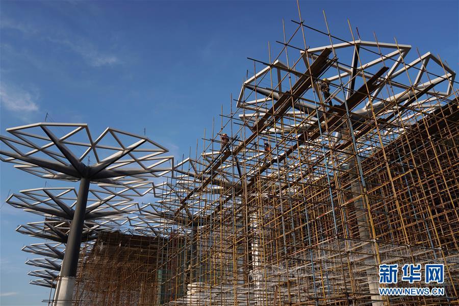 10月18日拍攝的建設(shè)中的北京世園會(huì)國(guó)際館。 新華社記者 鞠煥宗 攝