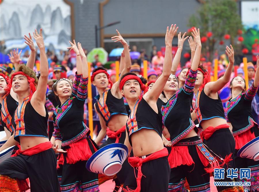 10月20日,各族同胞在廣西大化瑤族自治縣江濱文化廣場(chǎng)表演節(jié)目,慶??h慶?!⌒氯A社記者黃孝邦攝