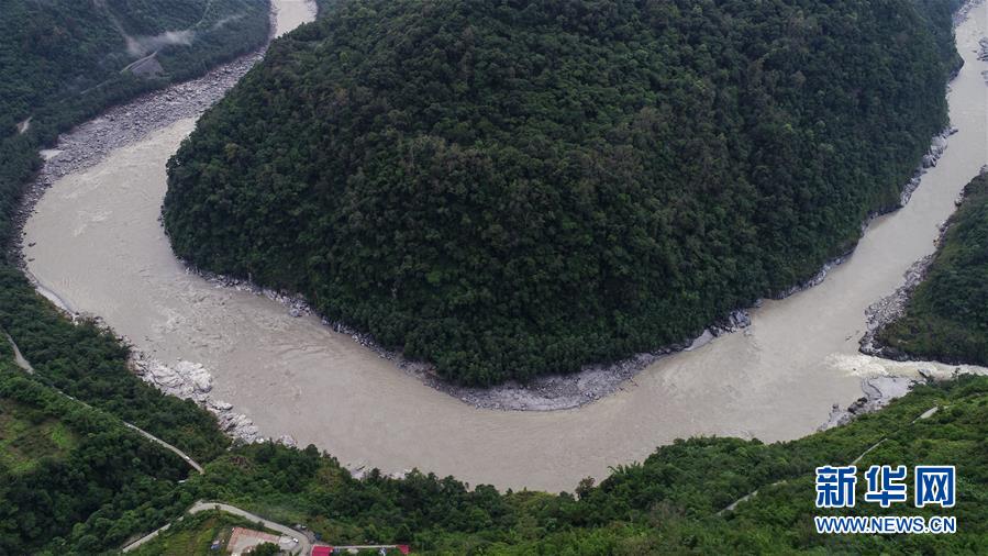 洪峰過境后的西藏雅魯藏布江墨脫段局部畫面(10月20日無人機(jī)拍攝)。