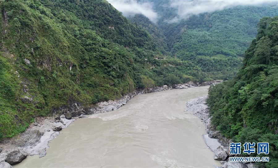 雅魯藏布江上的堰塞湖和堰塞體(10月18日攝)?!⌒氯A社記者 覺果攝