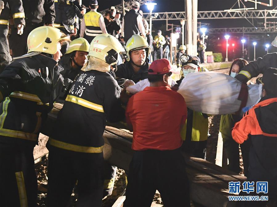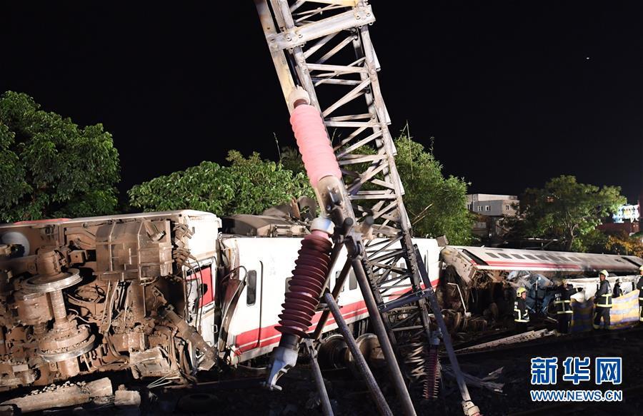 10月21日,救援人員在列車出軌翻覆事故現(xiàn)場工作。據(jù)臺灣宜蘭縣政府官員21日22時42分許在事故救援現(xiàn)場通報,普悠瑪6432次列車出軌翻覆事故已致18人死亡、164人受傷,其中171人已確認身份。據(jù)臺鐵介紹,發(fā)生事故的普悠瑪6432次列車21日下午3時9分從樹林出發(fā)開往臺東,下午4時50分在宜蘭新馬車站出軌,其中有車廂翻覆。事故原因還在調查中。 新華社記者金良快攝