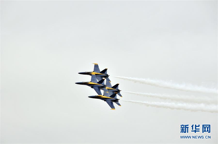 10月20日,在美國休斯敦,美國海軍“藍天使”飛行表演隊進行飛行表演。 新華社記者劉立偉攝