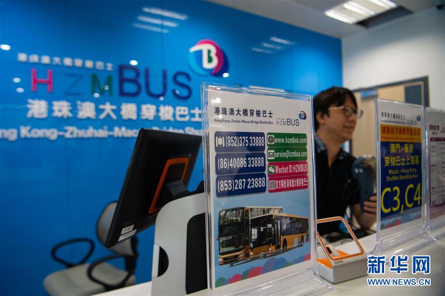 位于港珠澳大橋澳門邊檢大樓的穿梭巴士售票處(10月19日攝)。 港珠澳大橋?qū)⒂诒驹?4日通車運(yùn)營(yíng),成為連接香港、澳門的新通道。記者19日驅(qū)車前往澳門口岸實(shí)地采訪,了解口岸內(nèi)部設(shè)置和準(zhǔn)備工作情況。 新華社記者 張金加 攝
