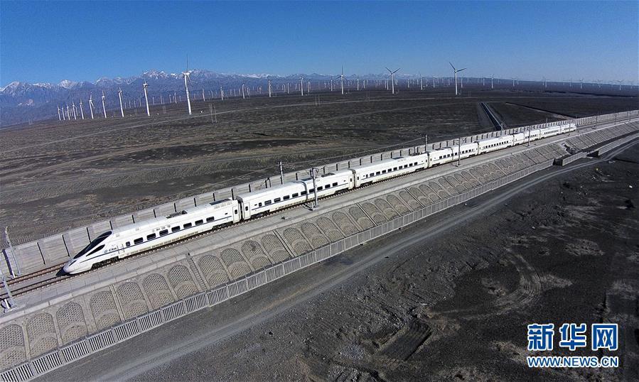 一輛和諧號動車穿行在新疆烏魯木齊達(dá)坂城風(fēng)力發(fā)電場的“風(fēng)車森林”里(2014年11月16日無人機(jī)拍攝)。今年以來,新疆穩(wěn)步推進(jìn)新能源參與“疆電外送”、擴(kuò)大與燃煤自備電廠調(diào)峰替代交易等多種電力交易方式,著力破解“綠色電力”上網(wǎng)難題,新能源發(fā)電量同比增加近13個(gè)百分點(diǎn),而棄電量和棄電比實(shí)現(xiàn)“雙降”,綠色發(fā)展理念進(jìn)一步落實(shí)。 新疆是我國重要的能源供應(yīng)和儲備基地,風(fēng)能、太陽能儲量豐富。近年來,新疆新能源裝機(jī)總量突破2700萬千瓦,規(guī)模和占比均居全國前列。新華社記者 江文耀 攝