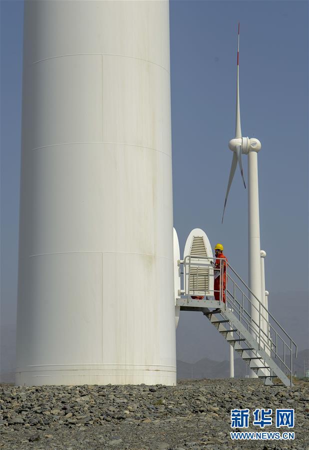在新疆烏魯木齊達(dá)坂城風(fēng)力發(fā)電場,工作人員查看風(fēng)力發(fā)電設(shè)備(2018年9月18日攝)。今年以來,新疆穩(wěn)步推進(jìn)新能源參與“疆電外送”、擴(kuò)大與燃煤自備電廠調(diào)峰替代交易等多種電力交易方式,著力破解“綠色電力”上網(wǎng)難題,新能源發(fā)電量同比增加近13個(gè)百分點(diǎn),而棄電量和棄電比實(shí)現(xiàn)“雙降”,綠色發(fā)展理念進(jìn)一步落實(shí)。新疆是我國重要的能源供應(yīng)和儲備基地,風(fēng)能、太陽能儲量豐富。近年來,新疆新能源裝機(jī)總量突破2700萬千瓦,規(guī)模和占比均居全國前列。新華社記者 趙戈 攝