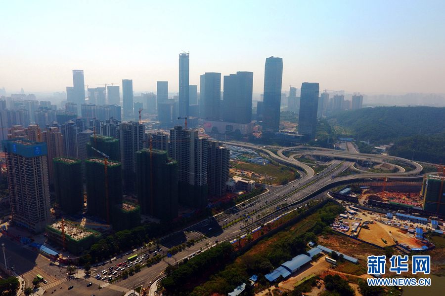 廣西南寧五象新區(qū)地處邕江之南,東起八尺江,西鄰水塘江,北起邕江,南望濱海,規(guī)劃面積約200平方公里。新區(qū)將規(guī)劃建設(shè)成為南寧市構(gòu)建區(qū)域性商貿(mào)物流基地、先進(jìn)制造業(yè)基地、面向東盟的大型企業(yè)總部基地及文化交流展示合作的重要樞紐、信息中心及金融中心的重要支撐的現(xiàn)代新城。圖為無人機(jī)航拍建設(shè)中的五象新區(qū)(攝于2018年10月7日)。新華網(wǎng)發(fā) 韋秀玲攝
