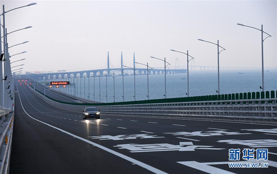 工作車輛行駛在港珠澳大橋上(2018年10月20日攝)。 金秋十月,伶仃洋上海天一色、潮聲陣陣,依傍著這片中國南海水域的城市群迎來深具意義的一天。 10月23日上午,港珠澳大橋開通儀式在廣東珠海舉行,中共中央總書記、國家主席、中央軍委主席習(xí)近平出席儀式,宣布大橋正式開通。 碧波之上,一橋飛架香港、澳門、珠海三地,以氣貫長虹的“中國跨度”,飛越滄海百年的歷史風(fēng)云,展現(xiàn)當(dāng)代中國的雄健風(fēng)采。 新華社記者梁旭攝