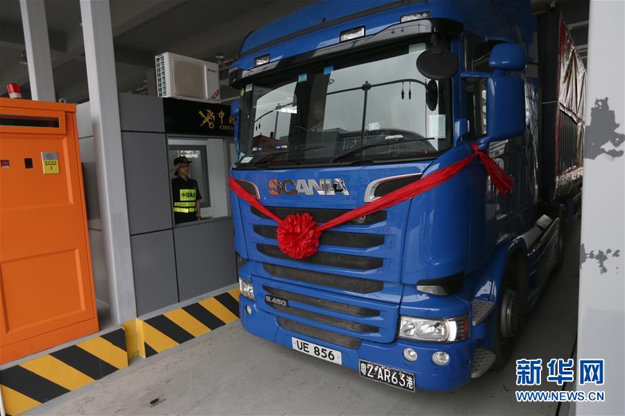 10月24日,港珠澳大橋珠海公路口岸通車首票出口貨物抵達(dá)一站式貨車出境驗放通道。當(dāng)日9時,港珠澳大橋正式通車。 新華社記者張加揚攝