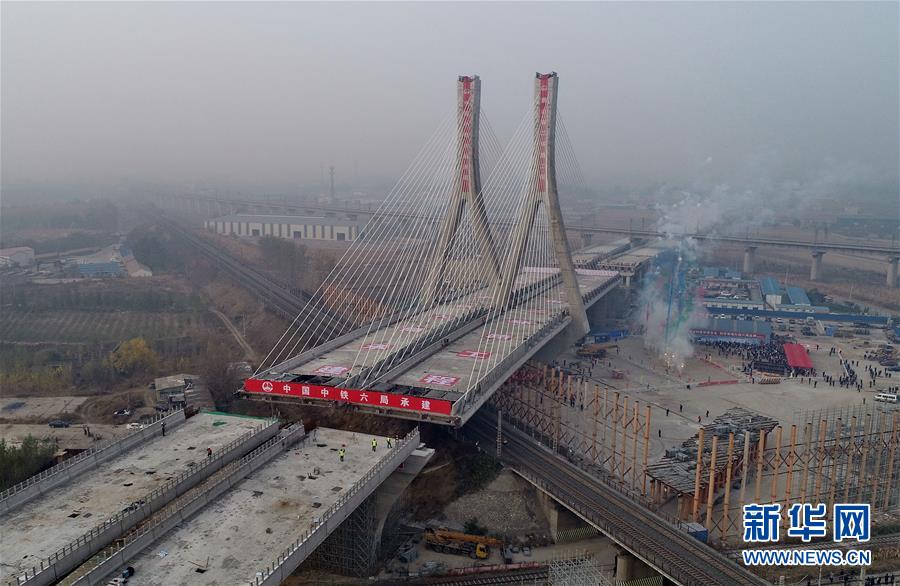 10月25日,唐山市二環(huán)路項目上跨津山鐵路斜拉橋轉(zhuǎn)體成功(無人機(jī)拍攝)。 當(dāng)日,河北省唐山市二環(huán)路項目上跨津山鐵路斜拉橋轉(zhuǎn)體成功。據(jù)介紹,該橋總長927.5米,主橋由斜拉轉(zhuǎn)體橋和轉(zhuǎn)體T構(gòu)橋組成,轉(zhuǎn)體總重5.1萬噸,其中斜拉轉(zhuǎn)體橋重3.3萬噸,主塔高達(dá)80.5米,為曲線變截面“雙人字”形空心塔,自上而下共有128根斜拉索。 新華社記者楊世堯攝
