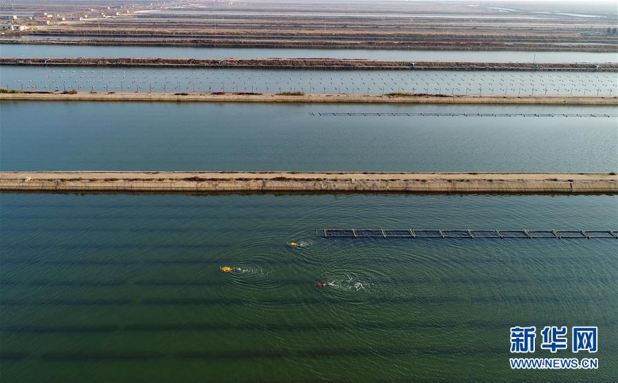 10月22日,樂亭縣姜各莊鎮(zhèn)二節(jié)村海參養(yǎng)殖基地的工人在捕撈海參(無人機拍攝)。 時下,正值渤海灣地區(qū)海參收獲時節(jié),河北省樂亭縣的海參養(yǎng)殖戶忙著捕撈海參,供應(yīng)各地市場。據(jù)介紹,該縣海域水質(zhì)優(yōu)良、氣候適宜,是海參養(yǎng)殖的理想場地,目前發(fā)展池塘造礁養(yǎng)殖海參面積6萬畝,年產(chǎn)鮮活海參6000多噸,年產(chǎn)值2億多元。  新華社記者 楊世堯 攝