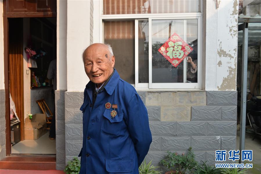 現(xiàn)已83歲的村民姚榮生佩戴紀(jì)念章站在自家院中(10月23日攝)。姚榮生生于1935年,曾參加抗美援朝戰(zhàn)爭(zhēng),現(xiàn)在開弦弓村與兒孫們生活在一起。 新華社記者 尹棟遜攝
