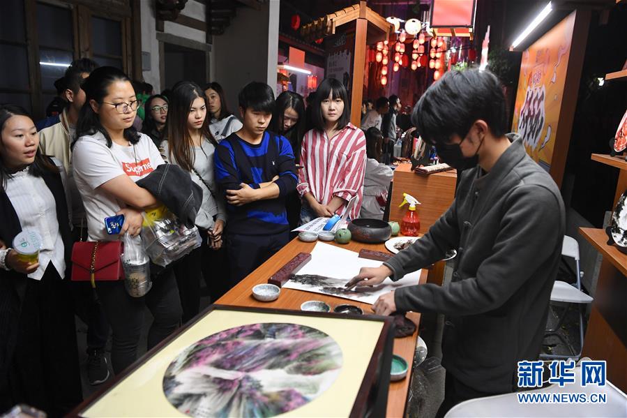 10月29日,在首屆天下碼商大會(huì)碼商集市上,觀眾觀看手指作畫。 10月28日至30日,由福州市政府聯(lián)合支付寶主辦的首屆天下碼商大會(huì)在福建福州舉行。 新華社記者 姜克紅 攝