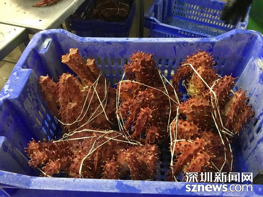 深圳新聞網(wǎng)訊 蜘蛛蟹(又名皇帝蟹)只產(chǎn)于南北兩極冰冷的海洋中,因為八條腿特長,外觀形似蜘蛛,而且觸角也比普通螃蟹多,所以被稱為蜘蛛蟹,大個的重量可達5公斤以上。智利政府規(guī)定,小于1.5公斤的不許捕撈。