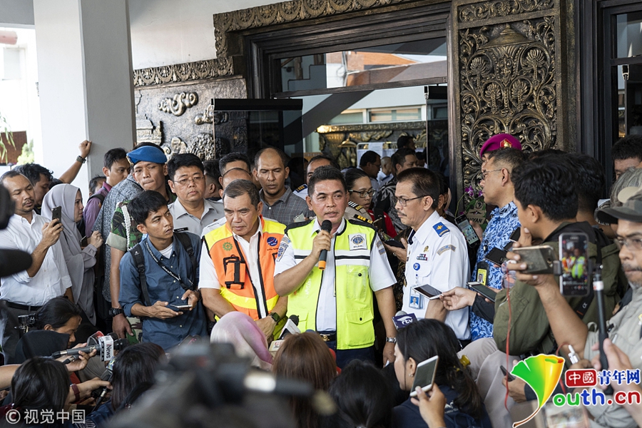 印尼哈達(dá)國際機(jī)場,機(jī)場管理局負(fù)責(zé)人Bagus Sunjoyo就獅航JT610墜機(jī)事件召開記者會。