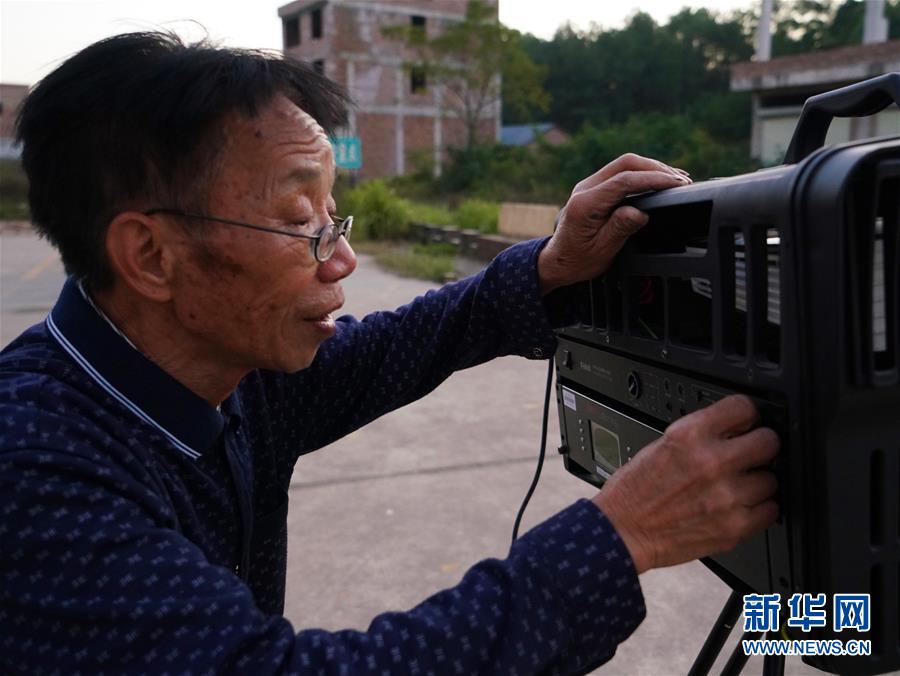 10月30日,曾紀連在寬田鄉(xiāng)山下村調(diào)試放映設(shè)備,準備為村民們放映電影。