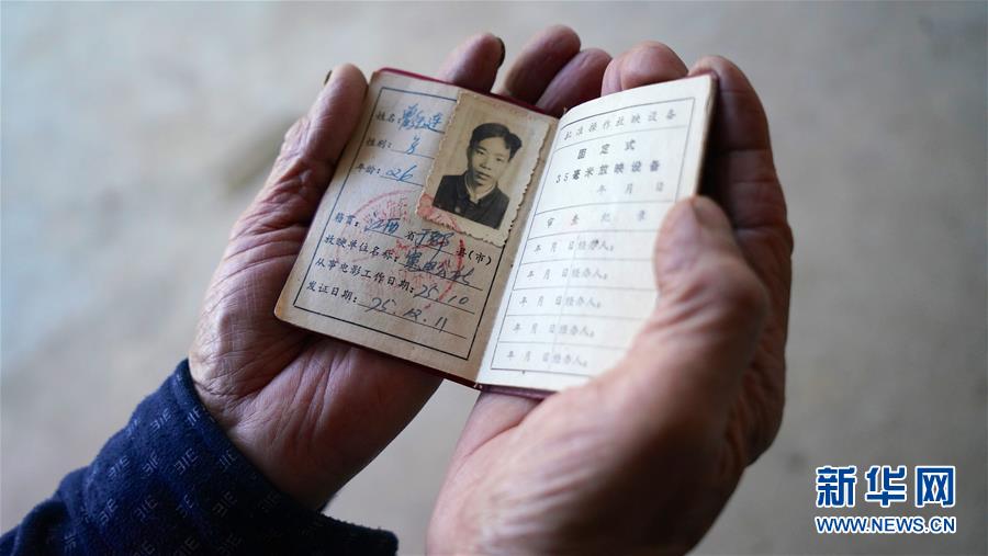 10月30日,曾紀連向記者展示1975年發(fā)放的電影放映員工作證。 新華社記者 胡晨歡攝