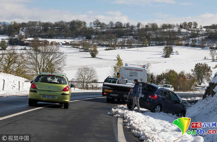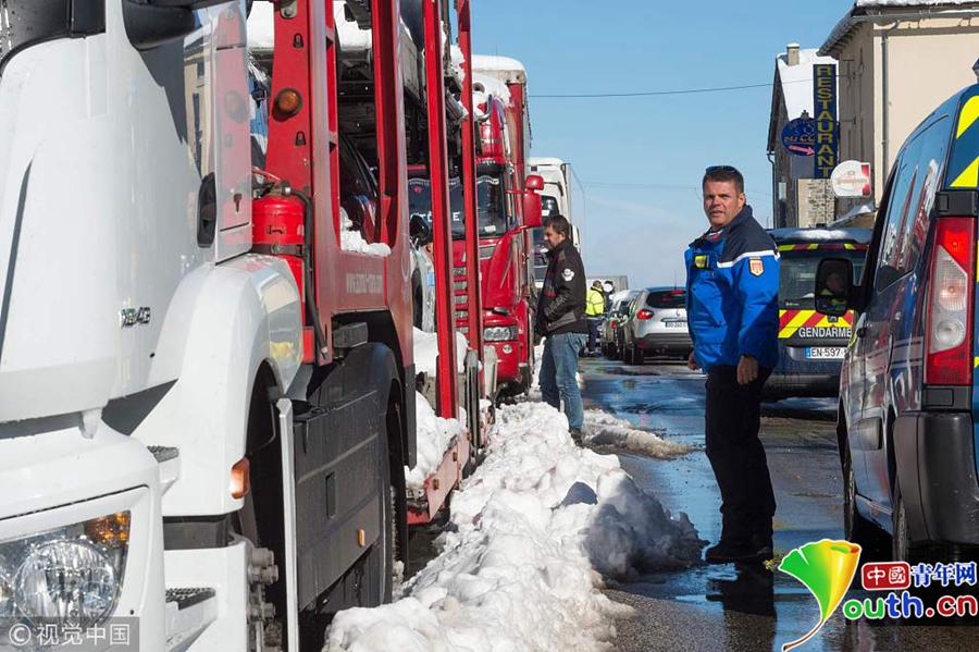法國突降大雪致900多人被困公路
