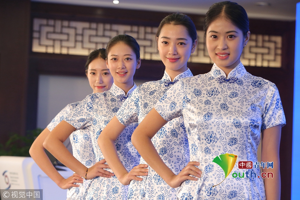 2014年11月17日,世界互聯(lián)網(wǎng)大會直播演練在浙江烏鎮(zhèn)舉行。來自浙江傳媒學院的大學生們,身著一襲青花瓷紋旗袍亮相,顯得分外嫵媚,引人注目。