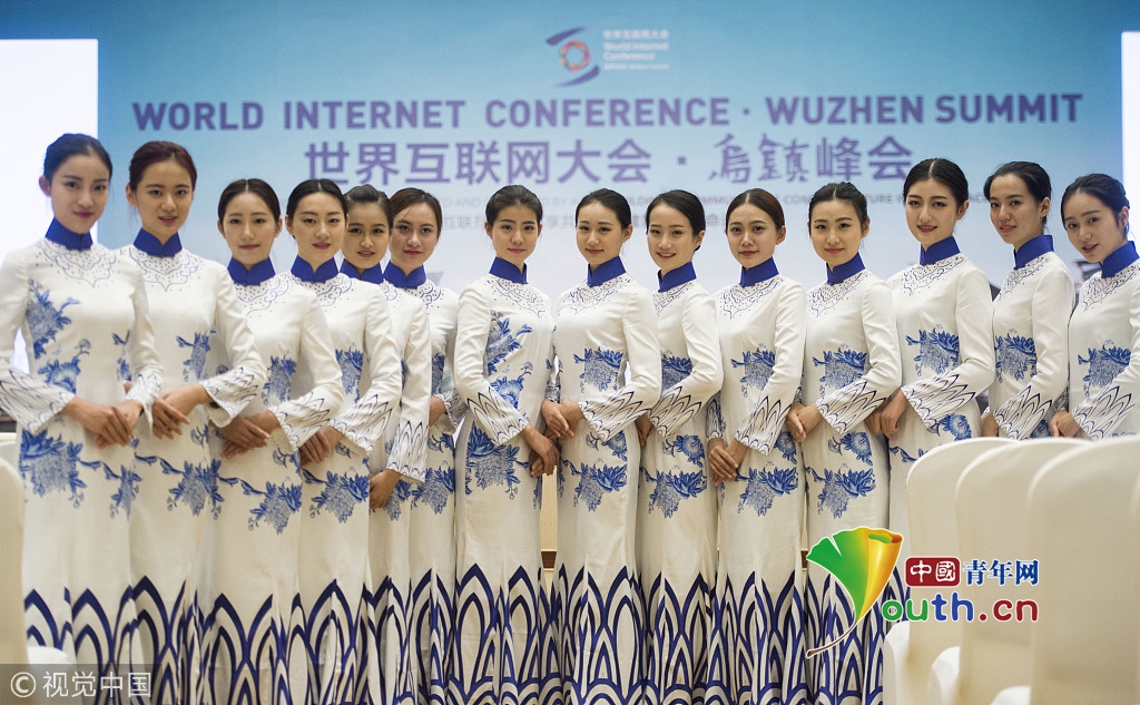 2015年12月14日,浙江嘉興,在烏鎮(zhèn)景區(qū)枕水度假酒店,身著中式青花旗袍的美女禮儀驚艷亮相主會(huì)場,成為世界互聯(lián)網(wǎng)大會(huì)上一道靚麗的風(fēng)景。