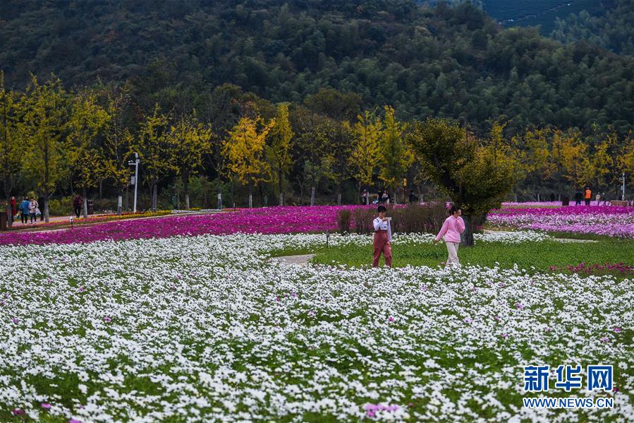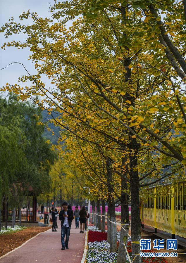 11月2日,游客在金黃的銀杏林與“五彩花海”間觀賞秋色。 新華社記者 徐昱 攝