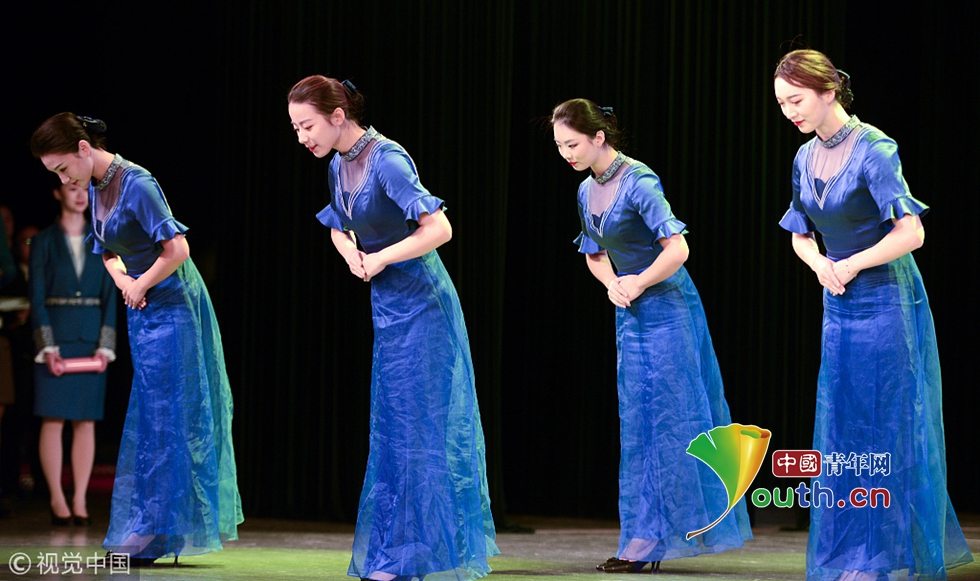 來(lái)自浙江傳媒學(xué)院的禮儀志愿者們正在進(jìn)行緊張有序的集中訓(xùn)練。圖片作者:浙江日?qǐng)?bào) 馮賀/視覺中國(guó)