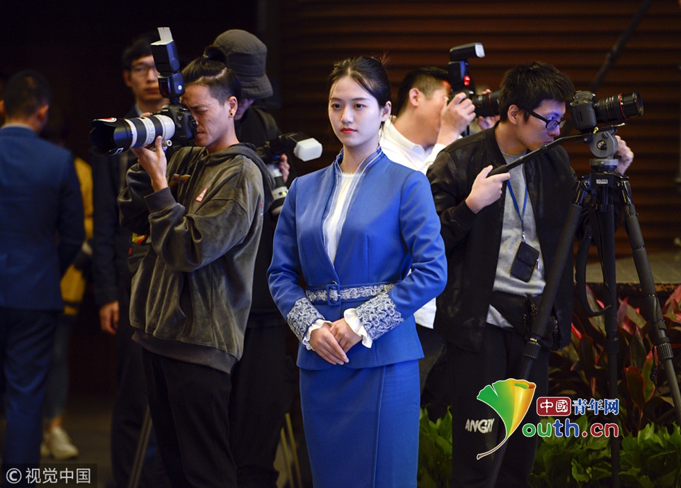 2018年10月15日,杭州,第五屆世界互聯(lián)網(wǎng)大會(huì)召開在即,來(lái)自浙江傳媒學(xué)院的禮儀志愿者們正在進(jìn)行緊張有序的集中訓(xùn)練。圖片作者:浙江日?qǐng)?bào) 馮賀/視覺中國(guó)