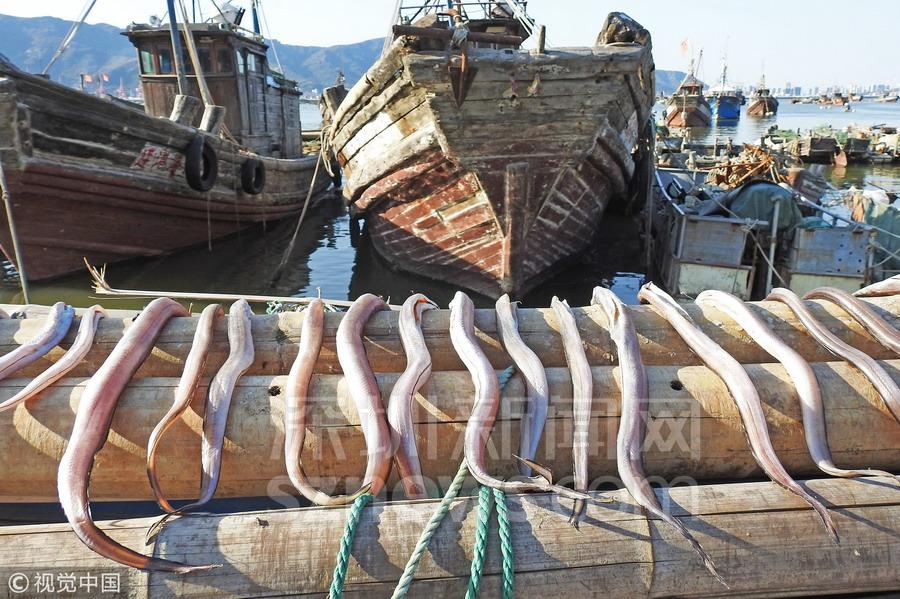 金秋時節(jié),江蘇連云港市沿海秋捕迎來豐收,漁民們將捕獲的鯧魚、鰻魚、小黃魚、烏賊等經(jīng)過腌制、晾曬加工成魚干,海島處處呈現(xiàn)出一派豐收景象。