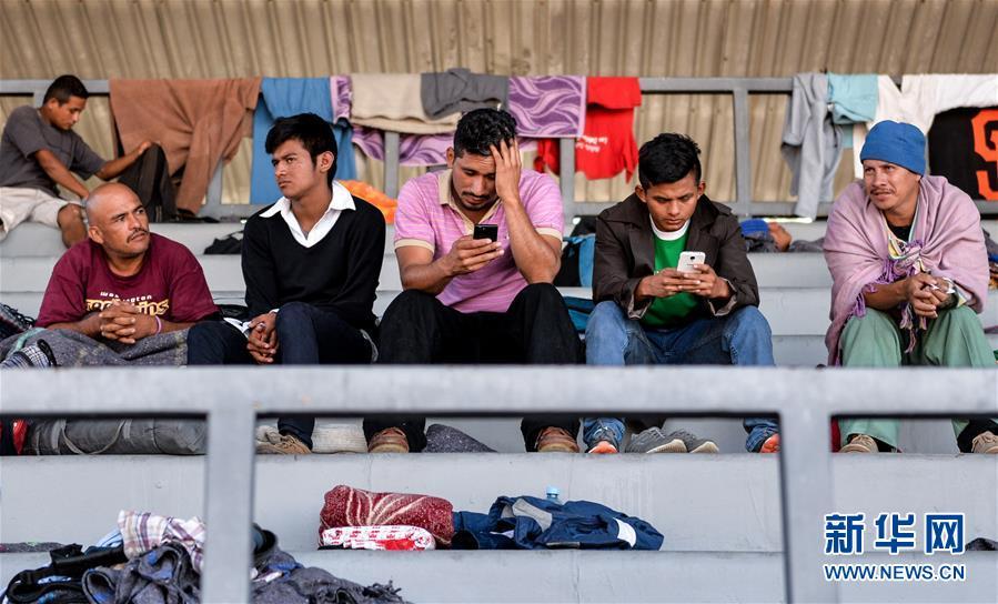 11月5日,在墨西哥首都墨西哥城,中美洲移民在臨時(shí)安置點(diǎn)休息。