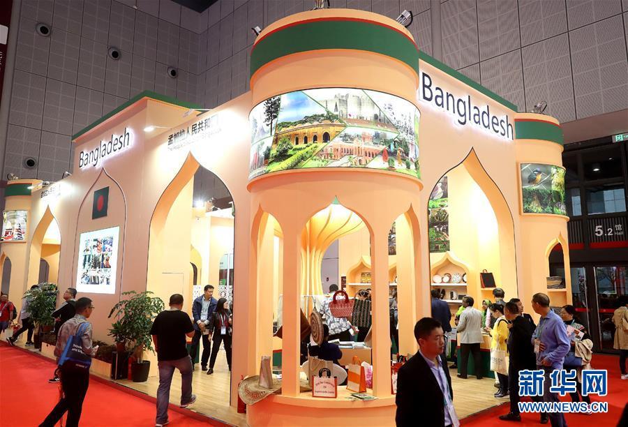 這是11月7日拍攝的孟加拉國展區(qū)。 中國國際進口博覽會11月5日在上海開幕。國家貿(mào)易投資綜合展(國家展)是中國國際進口博覽會的重要內(nèi)容,共有82個國家、3個國際組織設(shè)立71個展臺。 新華社記者 陳飛 攝