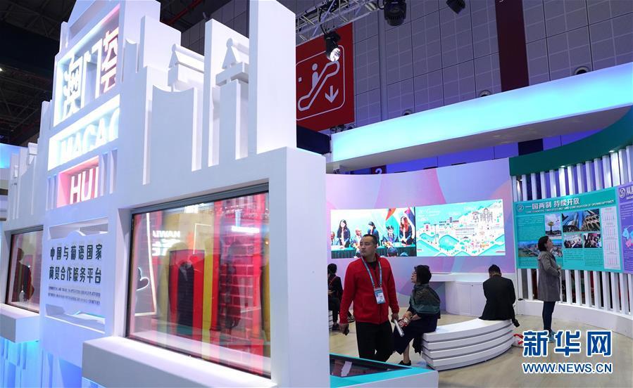 11月8日,人們在中國館澳門展區(qū)參觀。 中國國際進口博覽會11月5日在上海開幕。國家貿易投資綜合展(國家展)是中國國際進口博覽會的重要內容,共有82個國家、3個國際組織設立71個展臺。 新華社記者 程麗 攝