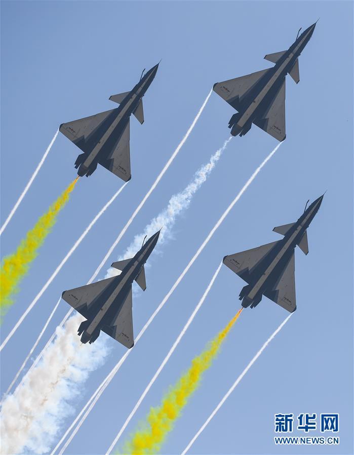 11月6日,殲-10B在飛行表演中。 新華社記者梁旭攝