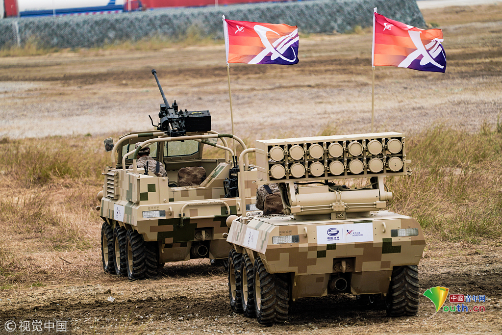 2018年11月8日,廣東珠海航展上,中國兵器集團(tuán)等組織地面的輪式即履帶式的武器裝備,進(jìn)行地面多種項目動態(tài)展示。視覺中國