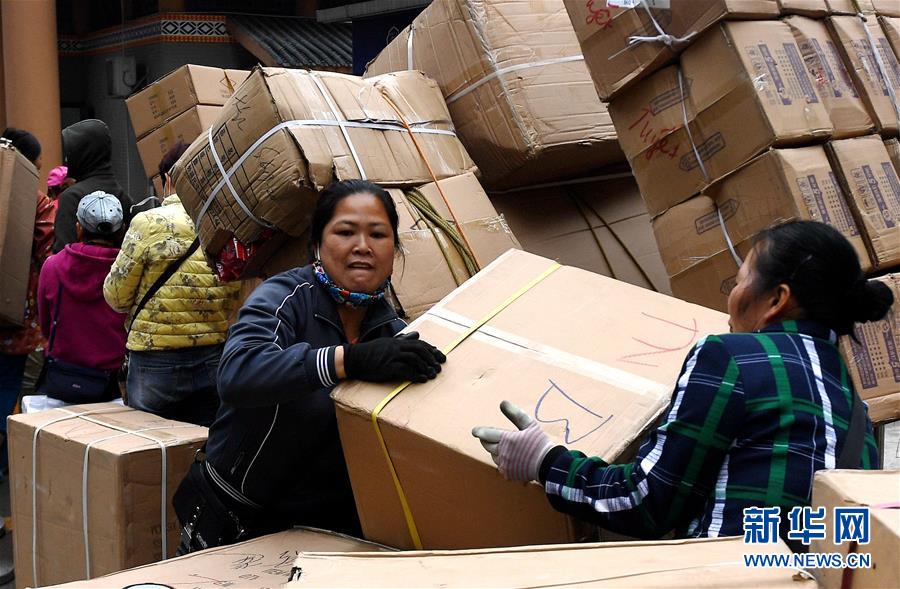 人們在廣西憑祥市浦寨邊貿區(qū)搬運貨品(1月16日攝)。新華社記者 張愛林 攝