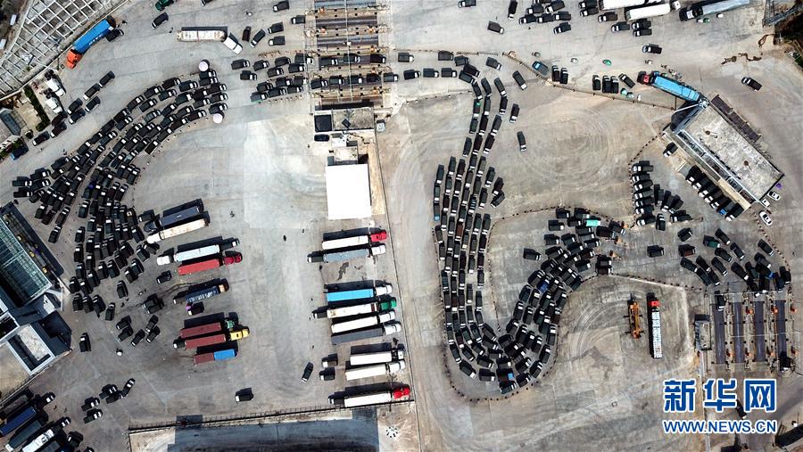 廣西寧明縣愛店口岸的互市車輛在進出關口(9月7日無人機拍攝)。新華社記者 張愛林 攝