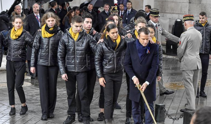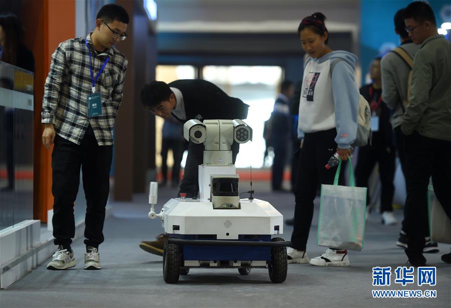 11月10日,人們在展會現(xiàn)場觀看展出的一款電力巡檢機(jī)器人。