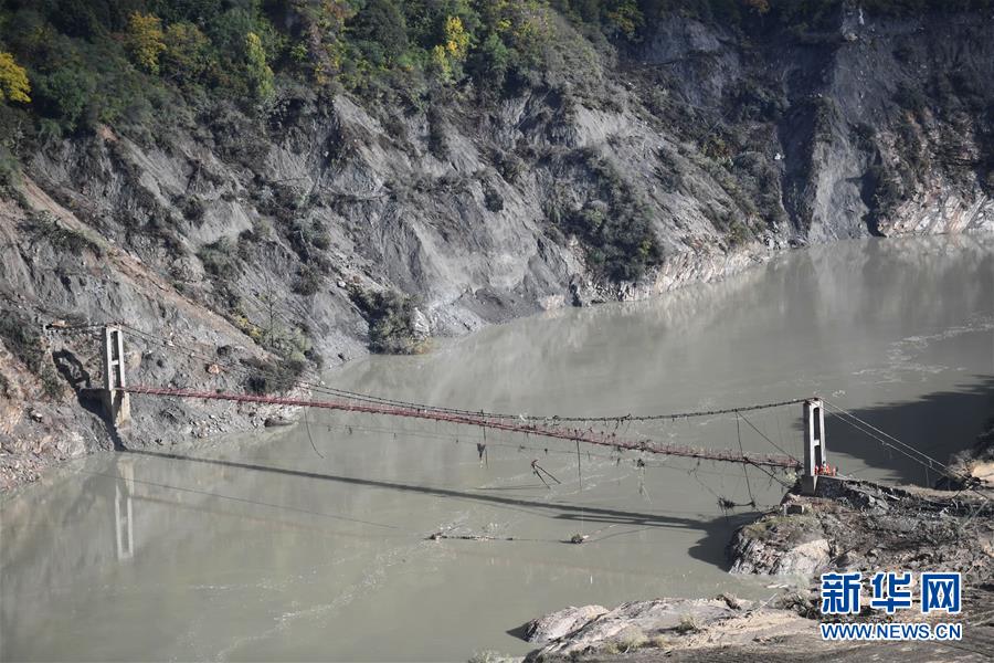 10月20日,西藏雅魯藏布江米林縣堰塞湖自然過(guò)流后,通往加拉村的大橋完全浮出江面。 10月19日13時(shí)30分,西藏雅魯藏布江米林縣堰塞湖開(kāi)始自然過(guò)流。記者從應(yīng)急管理部牽頭的聯(lián)合工作組獲悉,截至20日7時(shí),雅魯藏布江堰塞湖壩前水位已下降56米,估算留存水量1.6億立方米,堰塞湖洪水威脅得到緩解,防洪安全風(fēng)險(xiǎn)大大減輕,并將繼續(xù)降低。 10月20日,記者乘坐直升機(jī)從空中拍攝了雅魯藏布江堰塞湖自然過(guò)流的畫面。 新華社記者普布扎西攝