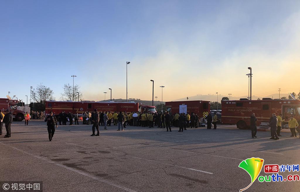 圖為文圖拉郡火場(chǎng)附近多輛消防車(chē)集結(jié)。