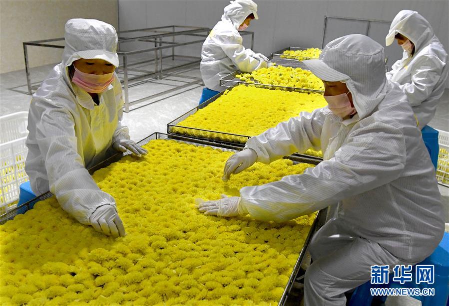 11月14日,河南省內(nèi)鄉(xiāng)縣乍曲鎮(zhèn)水溝村一家菊花茶加工企業(yè)工人在挑揀菊花。 近年來,河南省內(nèi)鄉(xiāng)縣依托資源優(yōu)勢,把發(fā)展特色農(nóng)業(yè)作為精準(zhǔn)扶貧的重要舉措,采取“公司+合作社+農(nóng)戶”的方式,招引農(nóng)業(yè)龍頭企業(yè)發(fā)展菊花種植產(chǎn)業(yè),把菊花加工成茶飲、藥材等高附加值產(chǎn)品,累計(jì)帶動(dòng)150余戶貧困戶就業(yè)增收。 新華社記者 李安 攝