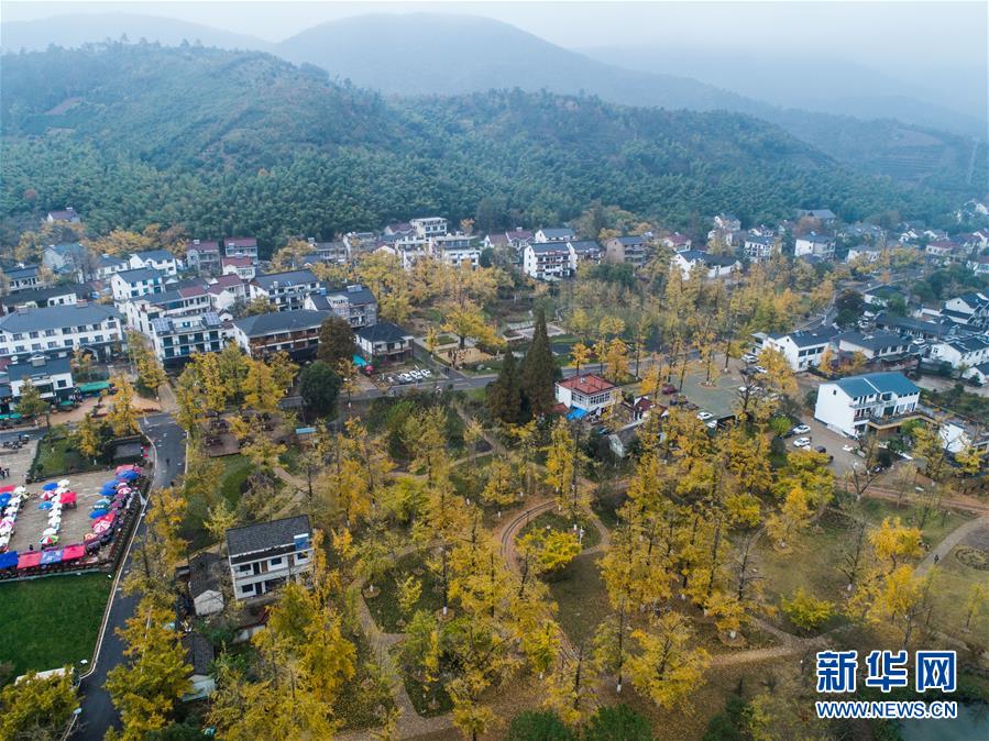 空中俯瞰十里銀杏林長廊(11月16日無人機拍攝)。近日,在浙江省長興縣小浦鎮(zhèn),“十里銀杏長廊”和近千畝花海經(jīng)過近一年的升級改造后,以嶄新的面貌與游客見面?;ê?、觀光小火車、古村民宿、銀杏長廊等旅游項目全面提升了小浦鎮(zhèn)鄉(xiāng)村旅游的品質(zhì)。新華社記者 徐昱 攝