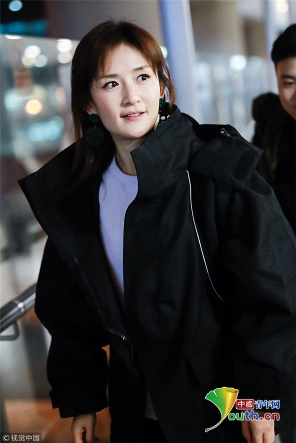 11月20日,湖南省長沙市,謝娜抵達長沙機場,一身黑衣酷感,遇到粉絲熱情揮手,她編著小辮露出甜笑,少女感爆棚!