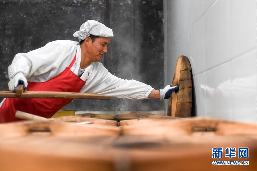11月22日,汪明祥在鍋巴廠里加工鍋巴。新華社記者張端攝