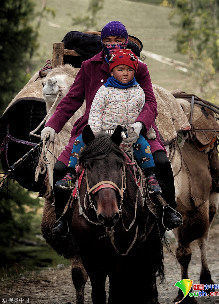 中國青年網北京9月13日電 2018年9月11日,新疆阿勒泰美麗的托勒海特夏牧場天氣逐漸變冷,哈薩克族牧民整理好行裹,抱著孩子,趕著牛羊,浩浩蕩蕩向秋牧場遷徙。